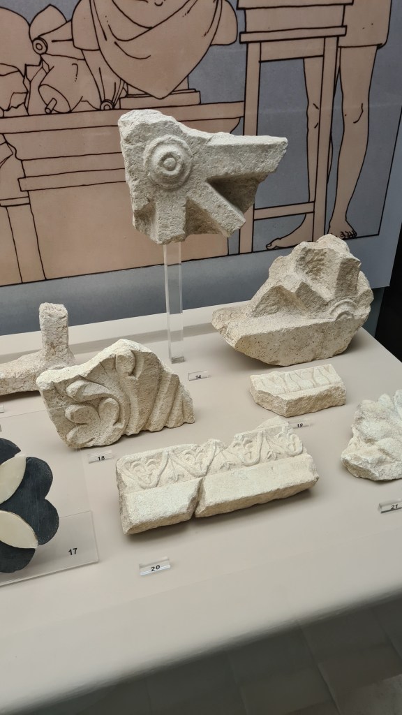 ממליצה לסיים או להתחיל את הסיור במוזיאון שבכניסה. נותן תמונה רחבה על ההסטוריה של המקום. כאן ניתן לראות ממצאים שהתגלו במקום – חלק ניכר נגנב עם השנים, פסיפסים שהועתקו למוזיאון, מטבעות שנמצאו , תכשיטים, כלי בית ודגם מוקטן של הפורום שממנו לא נותר דבר בשטח.