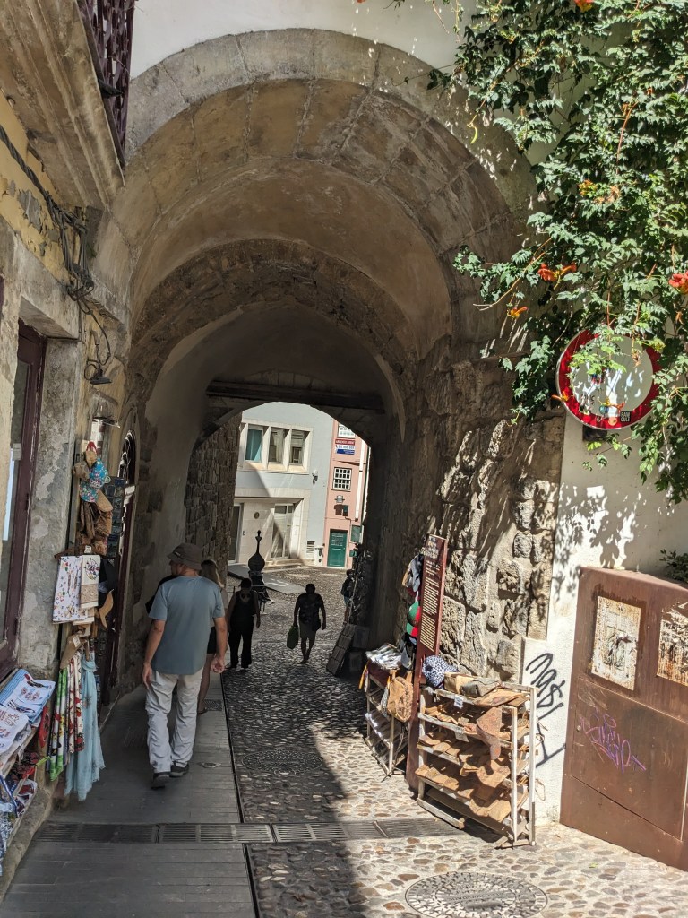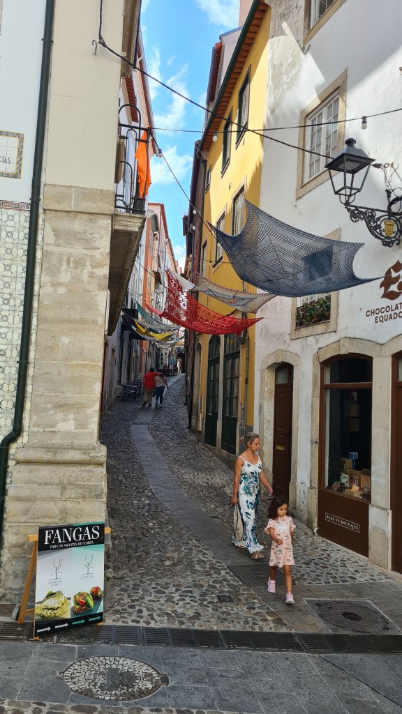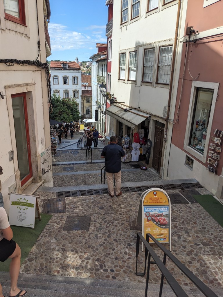 אחרי שנכנסים בשער ממליצה לטפס במעלה הסמטה שמצאה בחנויות יפות וכלי קרמיקה יפים עוד יותר , עלייה לא קלה ותלולה שבסופה מגיעים לאוניברסיטה של קוימברה.