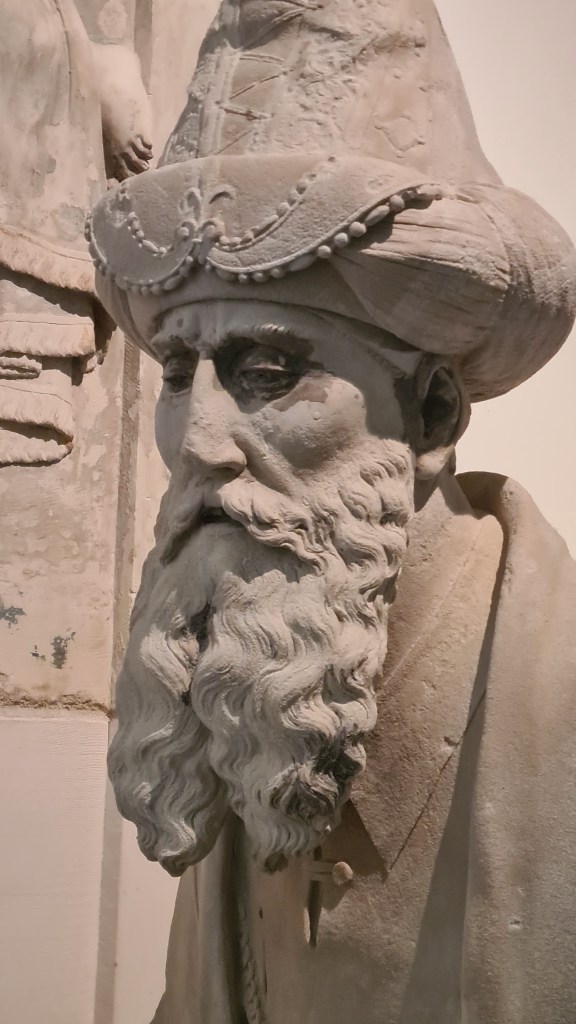 עיטורי החלונות והקירות חצובים בשיש בגילופים עדינים ומכניסים, עמודי השימוש עצומים בגודלם ובגובהם והויטרזים נהדרים