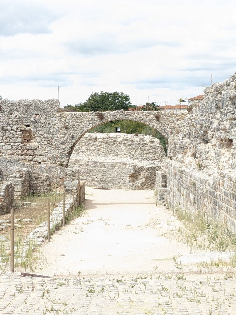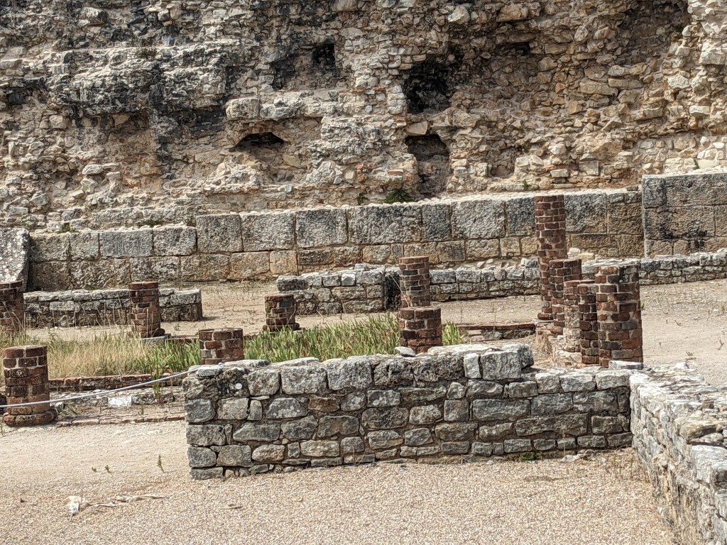 בחפירות התגלה מתחם גדול מאוד של מרחצאות רומיים ואקוודוקט שהוביל את המים למרחצאות אלה. אמנם חלק גדול נהרס אך עדיין ניתן להתרשם מאיכות הבניה של הרומים. הגשרים בתמונה הם חלק מאמת המים.
