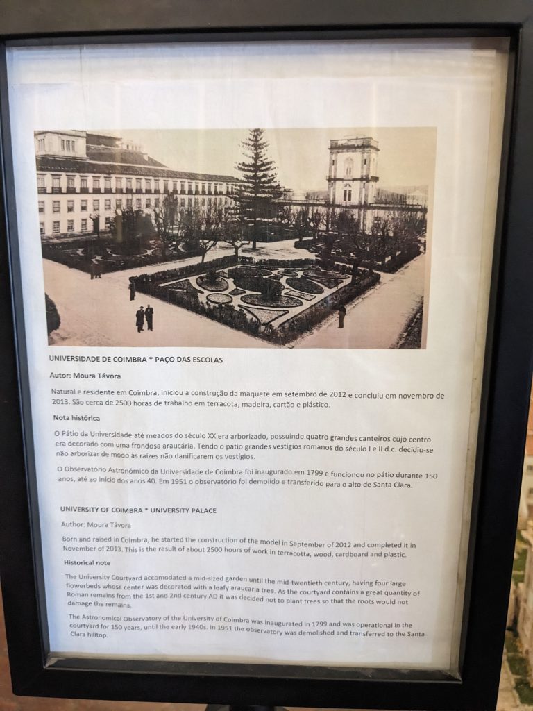 הפסל של המלך ז'ואאו ה-3 שולט על הכיכר המרכזית של האוניברסיטה. עומד בגבו אל הנוף ופניו אל האוניברסיטה אותה הקים מחדש בקוימברה. הוא זה שהזמין לכאן את מיטב המלומדים להקנות דעת לאנשי האצולה. אגב, זה המלך הראשון שלא היה עסוק במלחמות ולכן חיפש עיסוק מועיל יותר כמו קניית והקניית ידע.