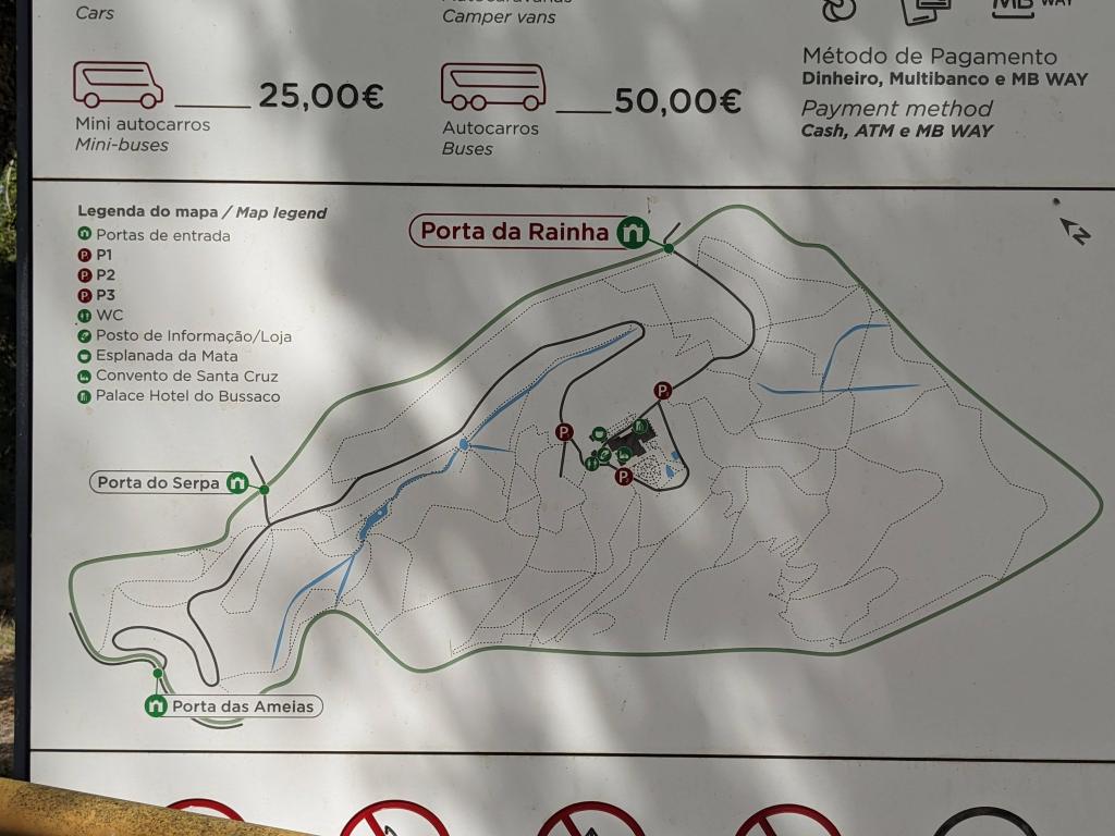 הארמון – Palace Hotel Bussaco – כתבתי על הארמון בתחילה ואכן כשמגיעים זהו מחזה מדהים. מצלמים מימין ומשמאל ומכל זווית אפשרית ובכל זאת רוצים להיכנס פנימה, מה עושים ? ניסינו לבדוק באינטרנט ולא מצאנו תשובה. כנראה, צריך ללון במלון או לאכול שם ארוחה. שני הדברים מאד יקרים. אז ביקשנו להיכנס ולשתות קפה. להפתעתנו נענינו בחיוב. נכנסנו, קיבלנו שירות vip הוליכו אותנו ללובי, שם ישבנו, הראו לנו היכן השירותים, כנראה חשבו שזו בעצם הבקשה. הגיש לנו מלצר בארשת פנים רצינית ויד מאחור כראוי. הקפה היה מצוין, העוגות ממש לא. שתינו, השתמשנו בשירותים ואפילו צילמנו. לסיכום, למי שיש זמן, יער בוסאקו חוויה מיוחדת ובעיקר לחובבי הצמחים השונים.