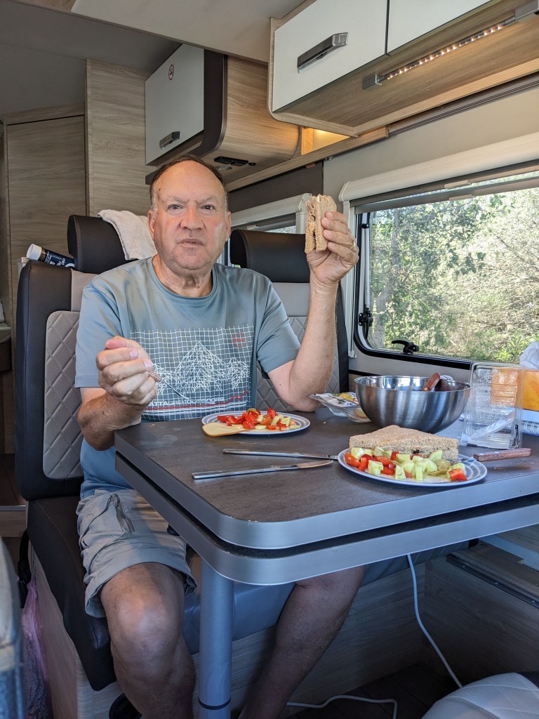 כמה מילים על נסיעה בקרוון. זה לא דומה לשום דבר אחר. זו מפלצת גדולה. כל הזמן צריך לזכור שרוחב הקרוואן 3.10 מטר לאורכו 6.5 וזו ממש מיומנות לנהוג בו. מראש סיכמנו שאני נהגת המשנה והנווט בדרכים ואני הטייס.. טייס לא בדיוק המילה המתאימה – אבל הנהג הראשי.