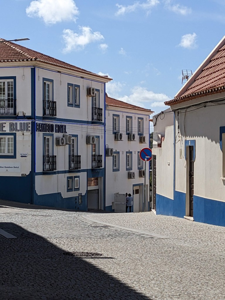 התחלנו את היום בעיירות החוף vila nova de milfontes – עיירת חוף של סלעים, צעירים שמחפשים ים וגלים ותיירים סקנדינבים שבאו לתפוס שמש 🌞 ולהישרף כמו צ'יפס. כל הבתים צבועים בלבן כאשר מסגרות החלונות צבועים בכחול. האווירה תוססת למכירה , מלא חנויות לתיירים והמקומיים מאוד אדיבים