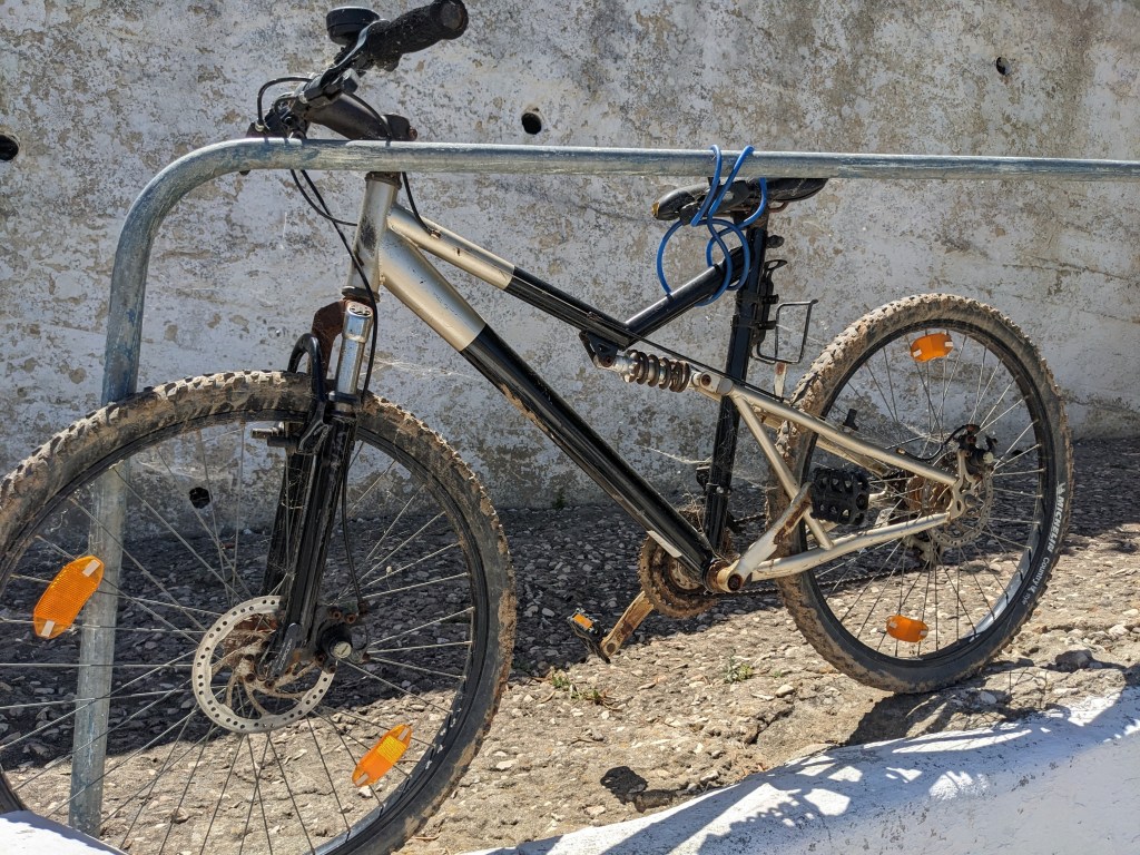 אחרי טוסט ענק וטעים עם המון גבינה צהובה המשכנו לעיר המקורית אלג'זור. למעט טירה מתפוררת בראש הגבעה כמעט ואין בה כלום. צילמתי באחת הסמטאות התלולות זוג אופניים מעלים אבק שלדעתי לא השתמשו בהן שנים. לא מכירה מישהו שמסוגל לרכב בתלילות הזו