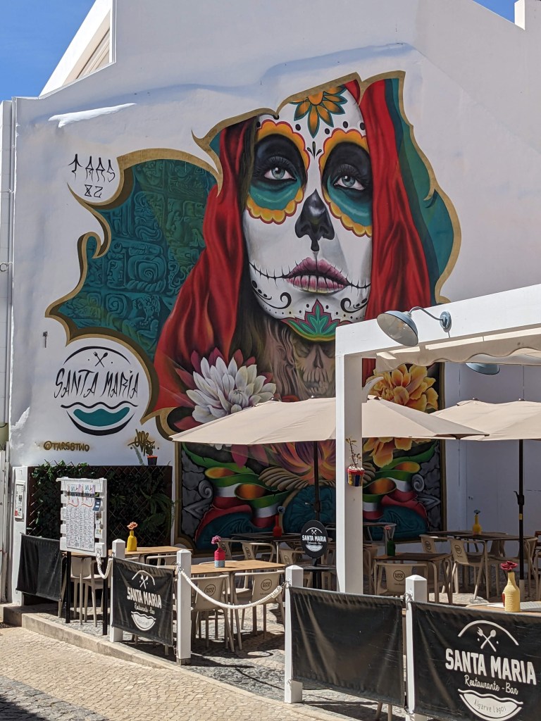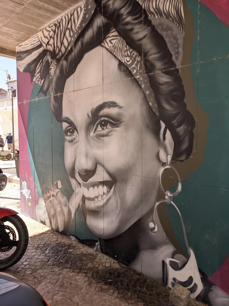 ועל הבתים ציורי גרפיטי יפהפיים. מילה על הגרפיטי – כאשר מדובר באומנות זה נפלא, אבל בפורטוגל מקשקשים סתם על הכל. על עמודי החשמל, מפות התיירות, קירות בתים – חבל