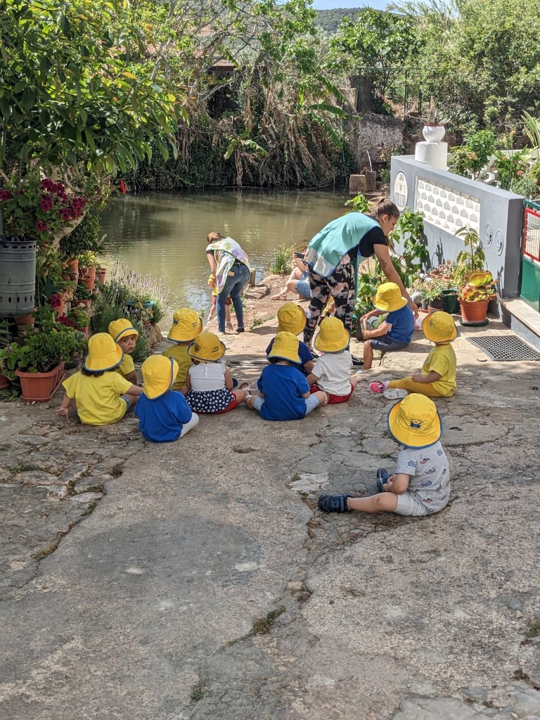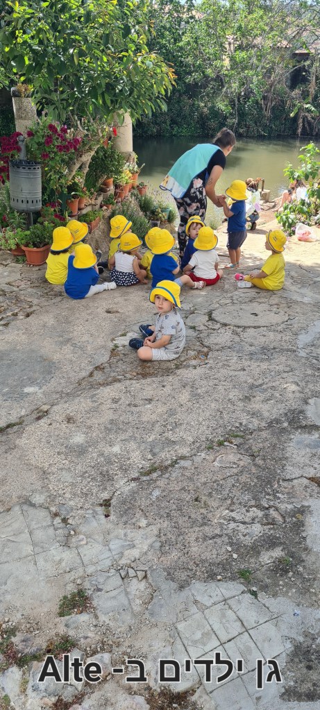 ליד הנחל פגשנו גננת עם פעוטון והיה נחמד לראות איך היא מראה ומסבירה להם על אפרוחי הברווזים.