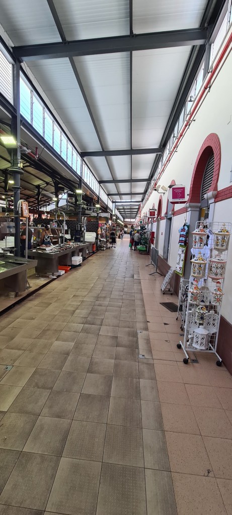 הדבר הראשון שנפגשנו בדרך לעיר העתיקה היה השוק המקורה, Mercado, מבנה מדהים ויפה עם דוכנים קטנים של פירות, רחבות, עבודות יד וכמובן דגים ובשר