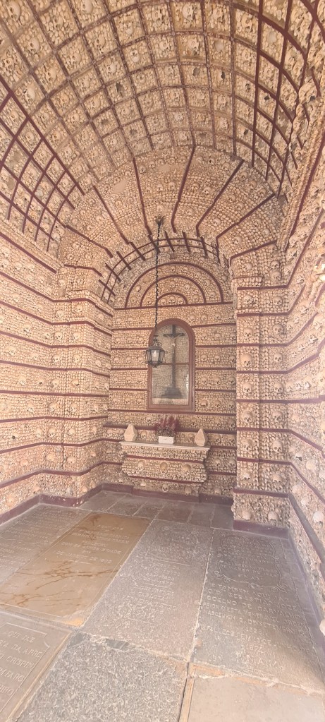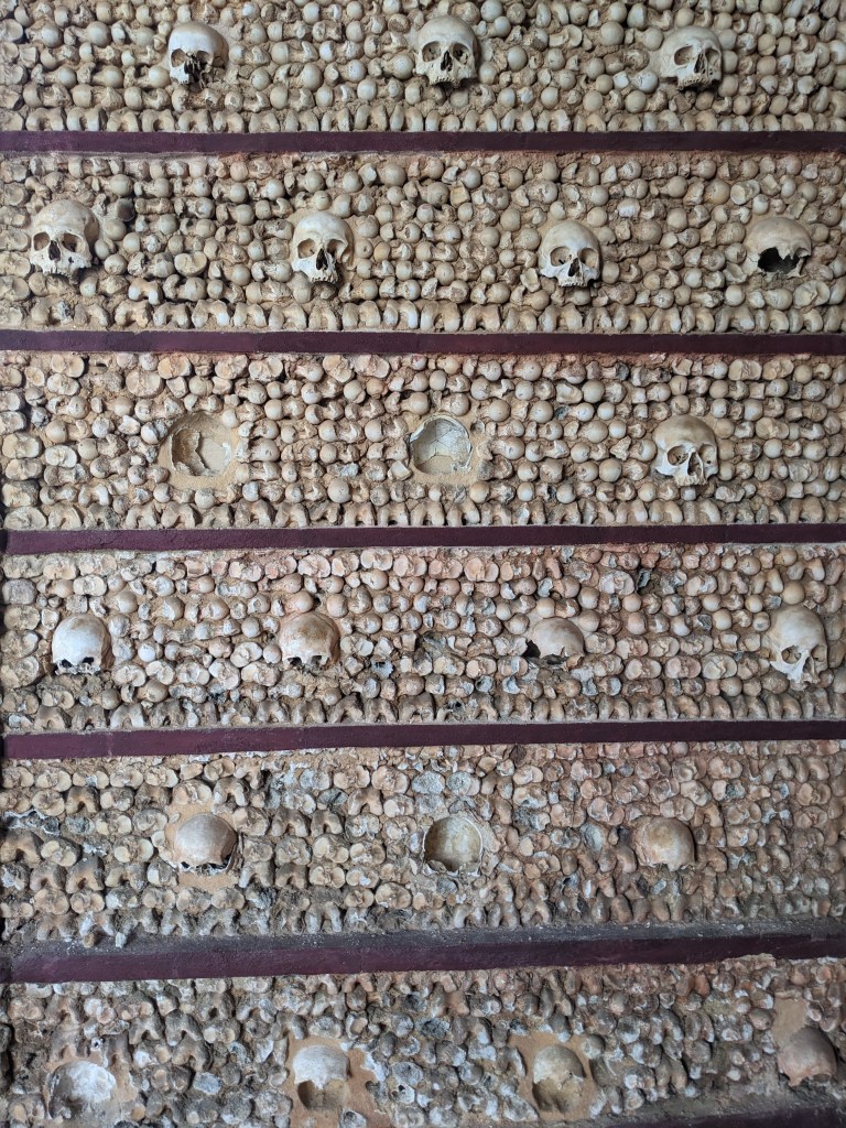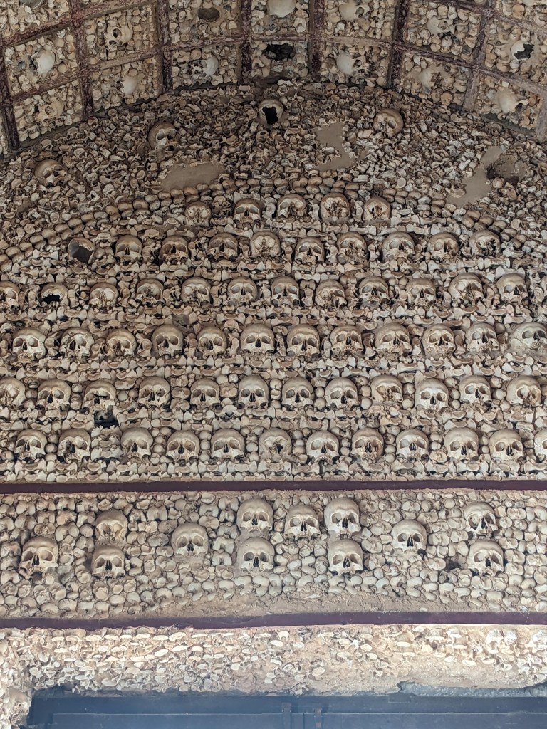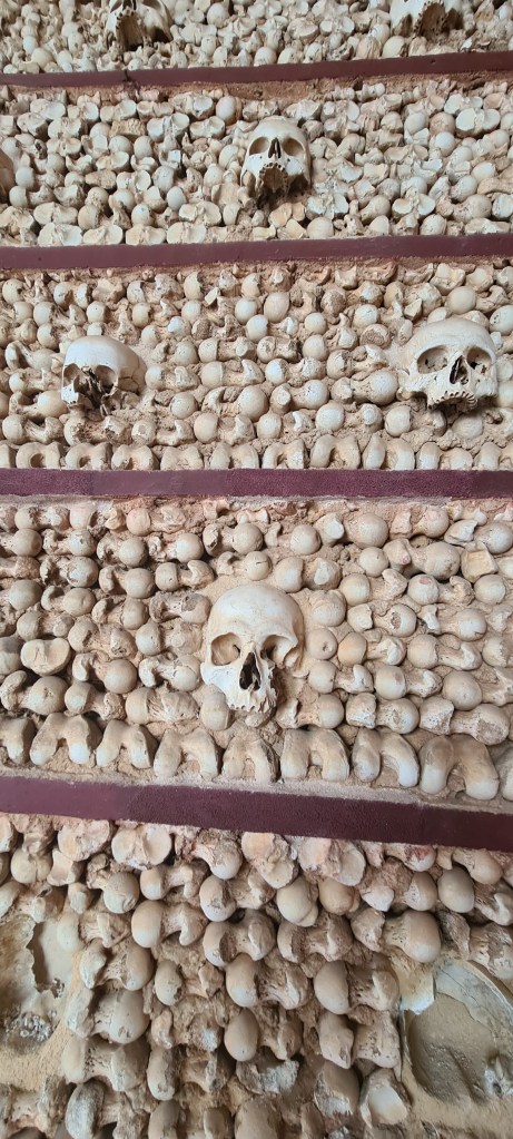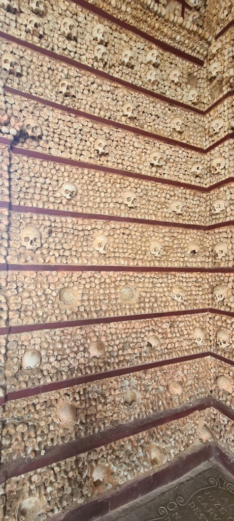 ואז נכנסנו לקפלת העצמות. שימו לב ל-7 התמונות מעל הכתוב, כדי להדגיש את ארעיות של האדם בנו מעצמות של 1000 נזירים את הקפלה הזו, כולל הגולגולת שלהם. לראות ולמות !!!!!
