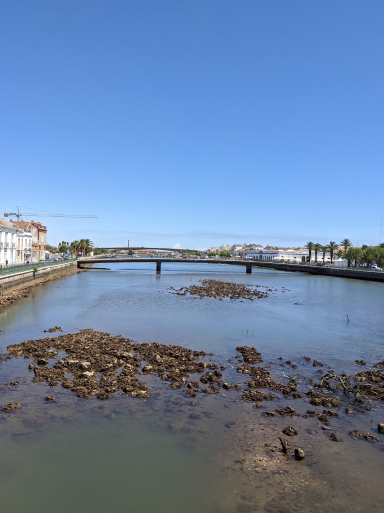 וכך נראה הנהר בשעה 16.00 – שפל מדהים שמורידה את הנהר ממש לקרקעית ואז מגלים את כל המילים והצדפות שדבוקים לבוץ ולסלעים.