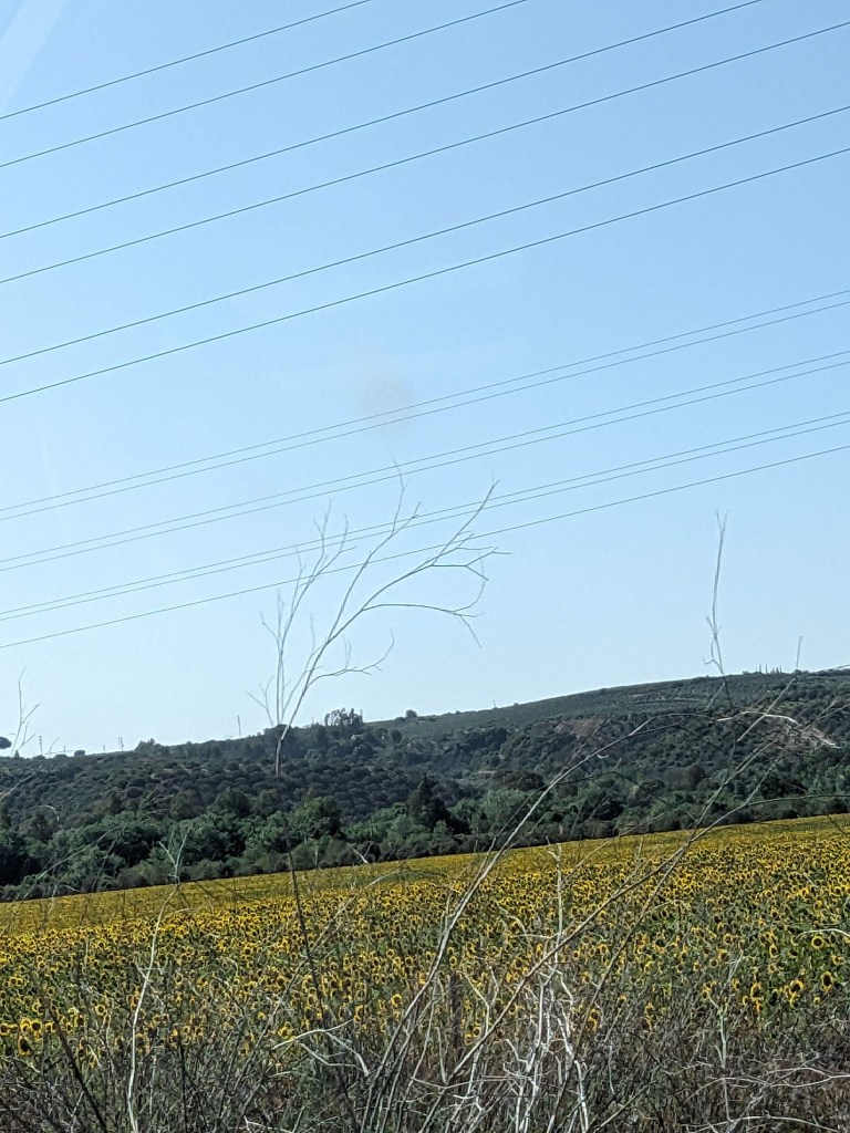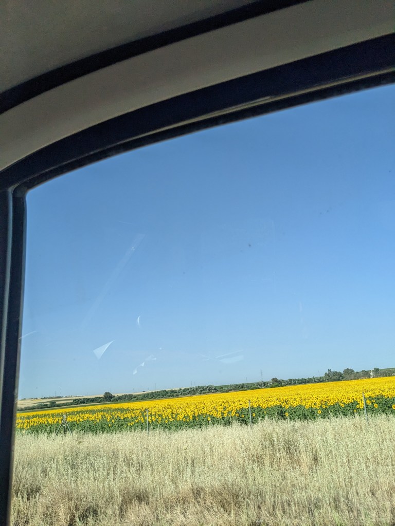כל הדרך לסביליה ליוו אותנו מטעי זיתים ושדות חמניות רחבים אינסופיים. ניסיתי לצלם בנסיעה ולא כל כך הצלחתי.