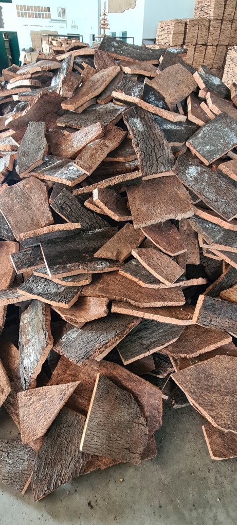 גם במפעל העבודה ידנית. הפקת השעם מייצרת עבודה לאלפי אנשים וקיים יחס של כבוד לעצים ולתעשייה.
