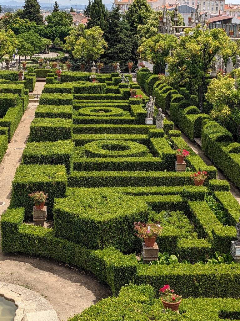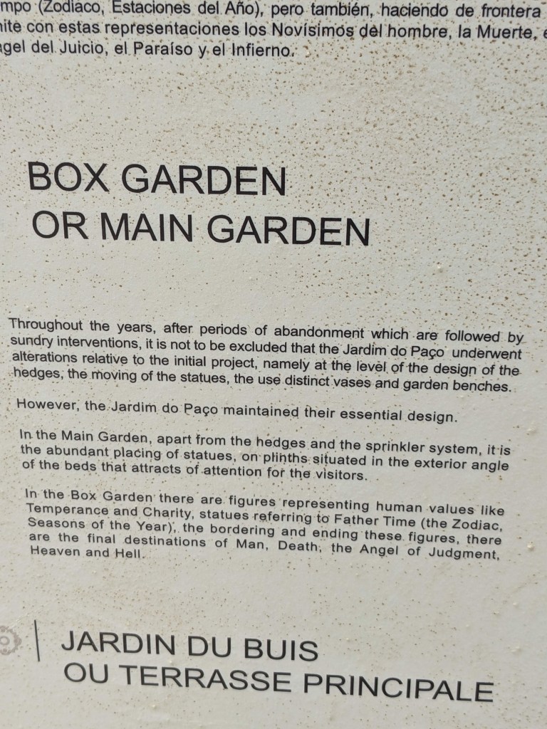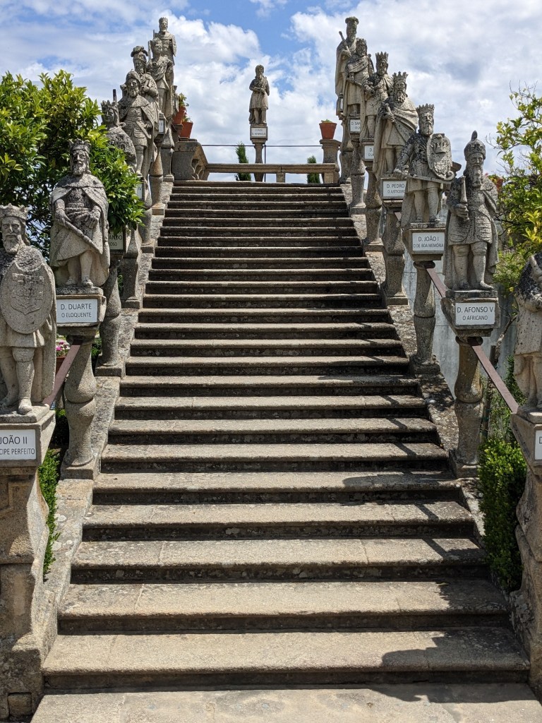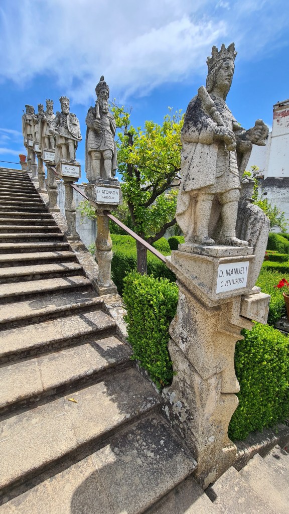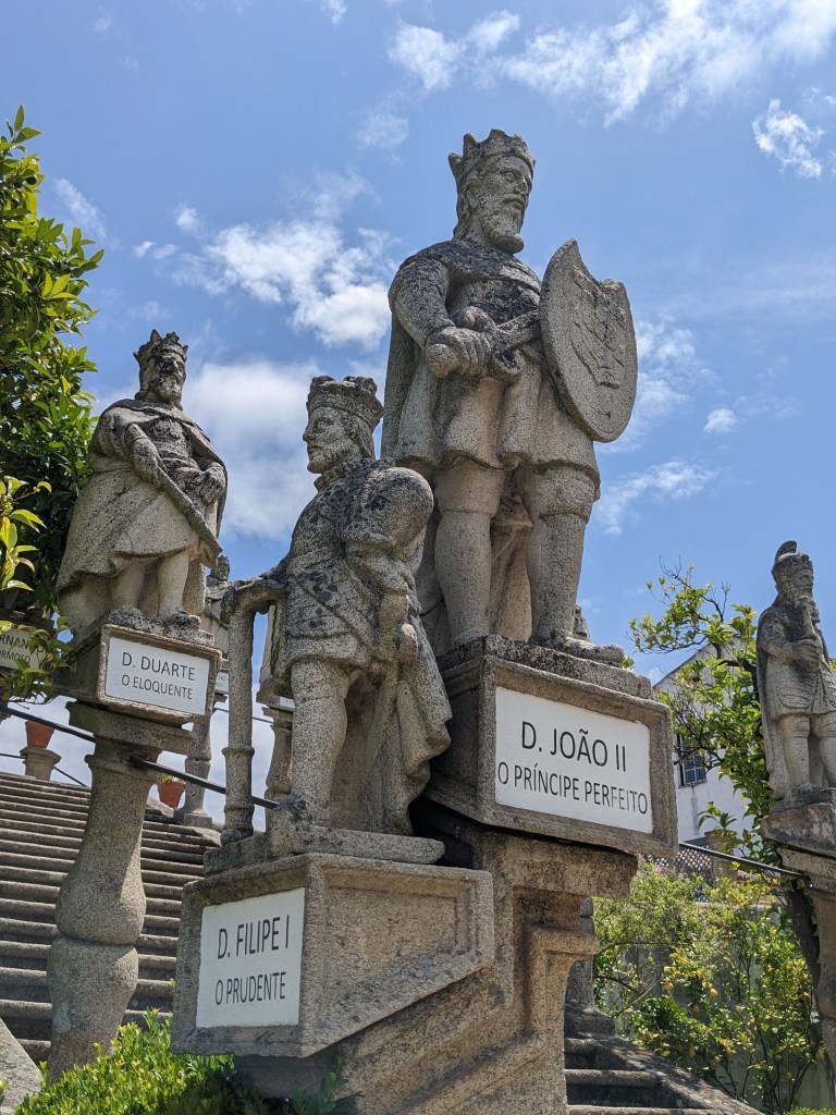 וגם נקמנות לא חסרה לפורטוגלים שעיצבו את הגן. במעלה גרם המדרגות הצפוני עוצבו כל מלכי פורטוגל בגובה סטנדרטי של אנשים למעט 3 מלכי ספרד שמלכו בתקופות מסוימות על פורטוגל אותן עיצבו כננסים והעמידו אותם ליד מלכי פורטוגל כדי שכולם יראו את ההבדל.