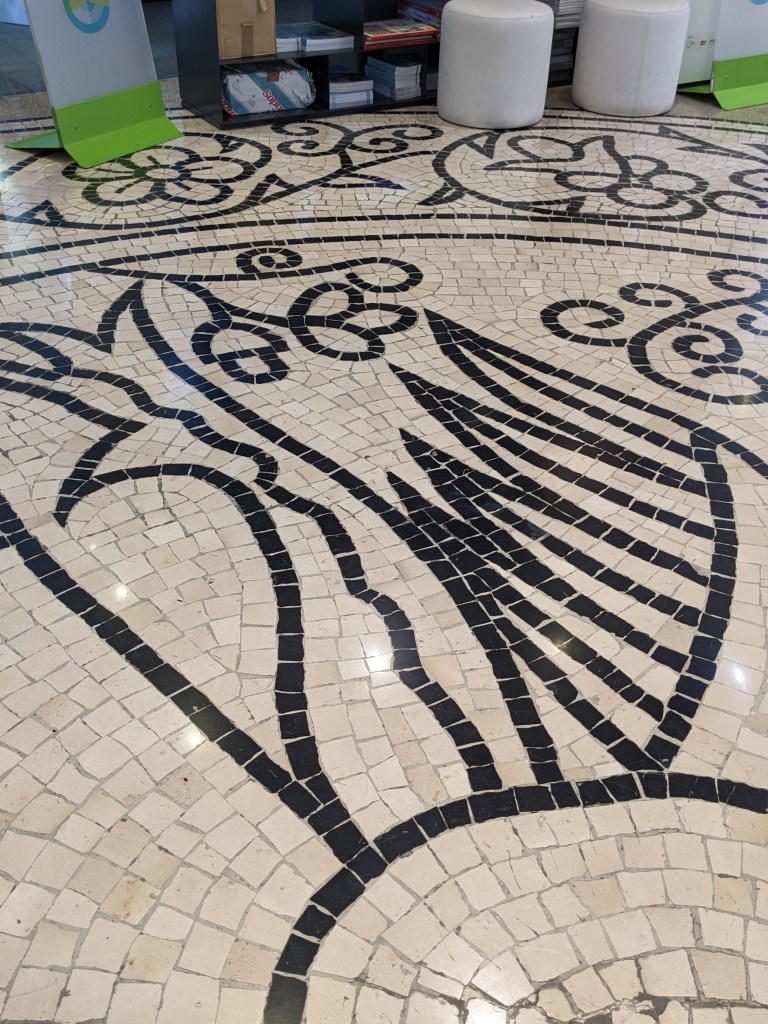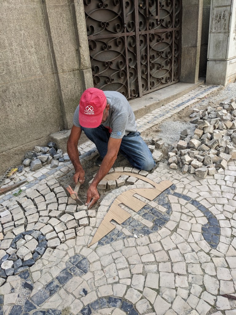 המדרכות בעיר הן מלאכת מחשבת. הם מציירים דוגמה על קרטון , מניחים אותו על תוואי המדרכה ואז מביאים אבנים קטנות בצבעי שחור ולבן וממלאים את הדוגמה.