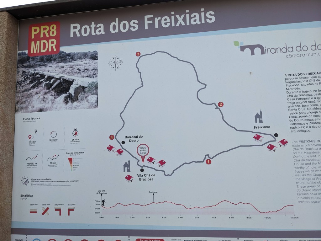 הבוקר, לאחר ארוחת הבקר יצאנו מצוידים בנעלי הליכה, ארוחה קלה לדרך ומים לצעוד במסלול מעגלי שארכו 12 ק"מ היוצא וחוזר לכפר בו אנו גרים. השביל עצמו מסומן PR8 MDR. ה-MDR מרמז על הימצאו באזור העיירה ששמה Miranda Do Douro.