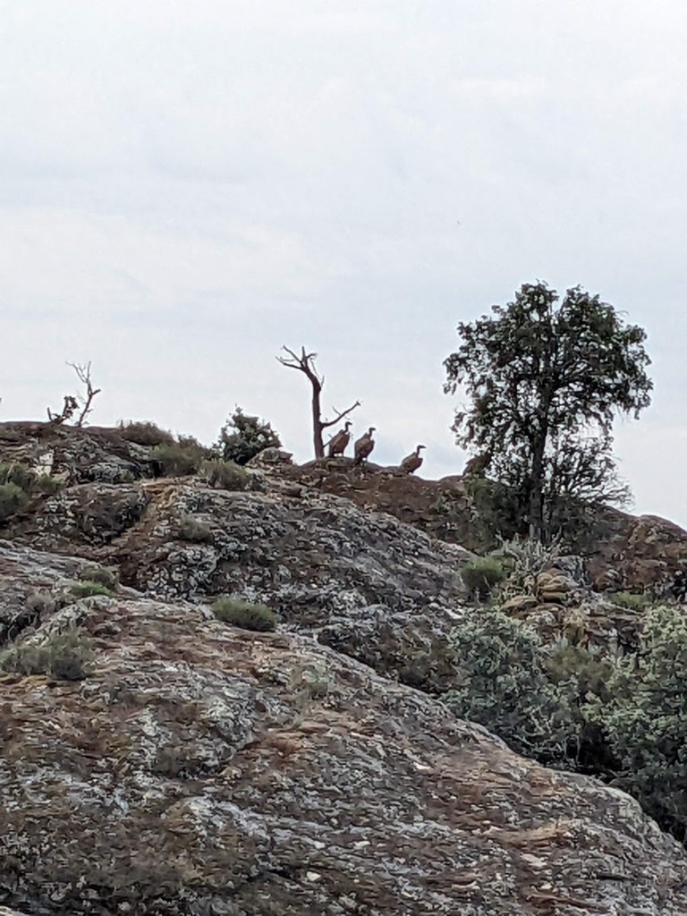 בכניסה לכפר Freixiosa , על מצוק הבחנו לפתע בלהקת נשרים. מספר בוגרים ושלושה גוזלים עמדו על סלע במרחק כ- 100 מטר. הייתה התרגשות רבה , ניסינו להתקרב בשקט ולצלם. הבוגרים מייד התעופפו והגוזלים היססו ואחר כך פרשו כנפיים.