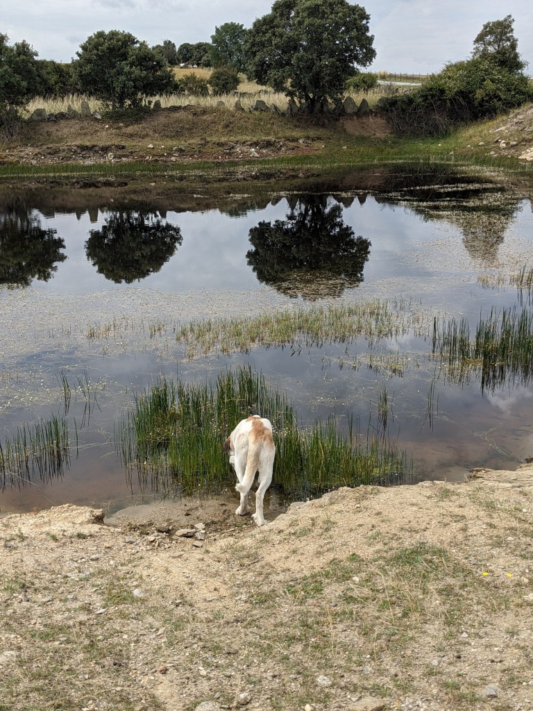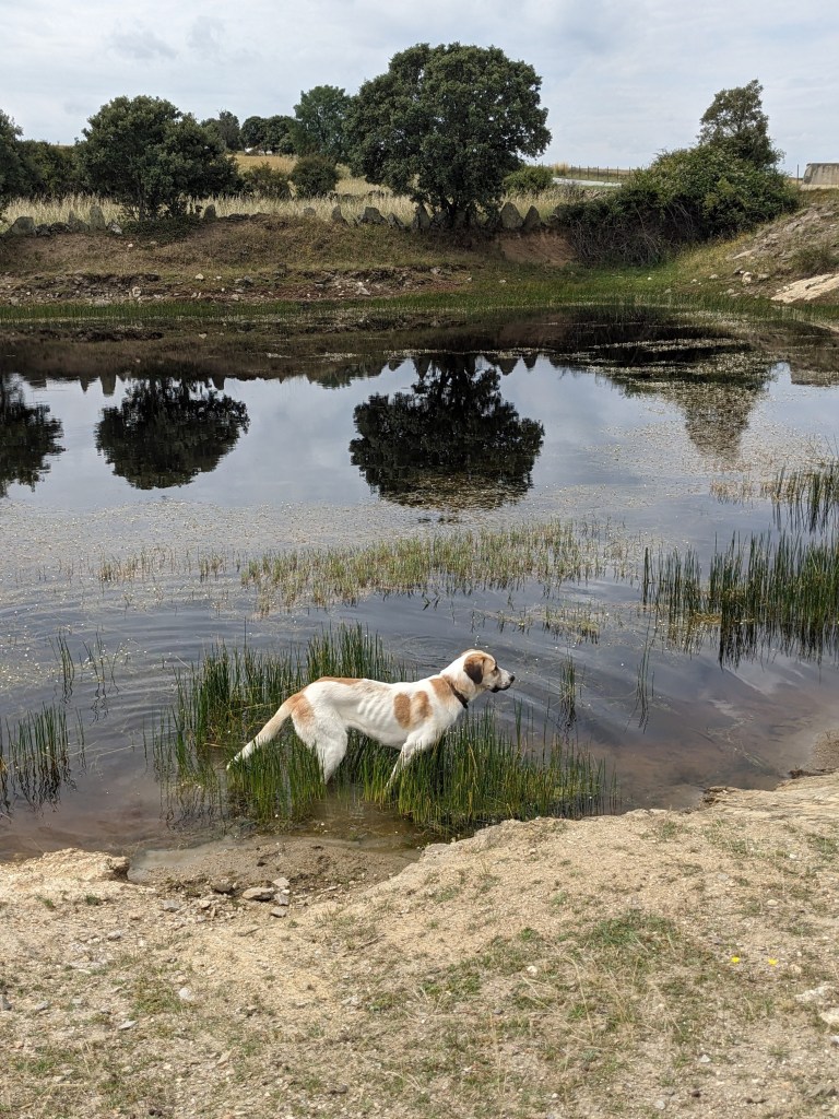 אני חייב לציין מאד לטובה את עזרתו של האיש. המידע עזר לנו מאד ואכן, פעלנו כעצתו. פנינו שמאלה לתוך השדה והלכנו לפי חוש. הכלבה שלנו שמחה לקפוץ מדי פעם לכל מיני בריכות