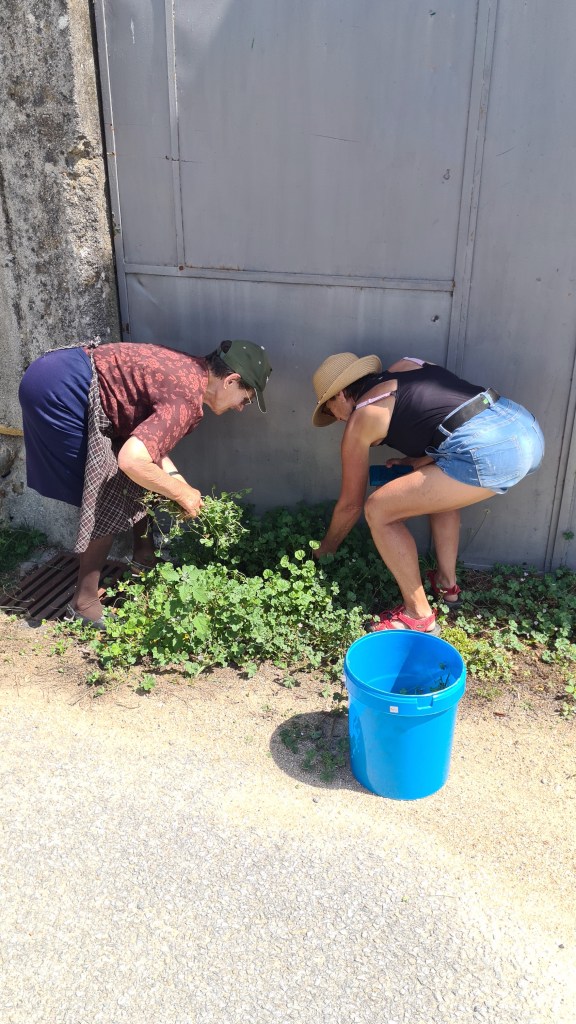 גם כאן גינות ירק ענקיות צמודות לבתים. ליד הנהר שולחנות אז ישבנו לאכול את הצהרים שלנו. סנדביצים, ירקות, גבינות ופירות.