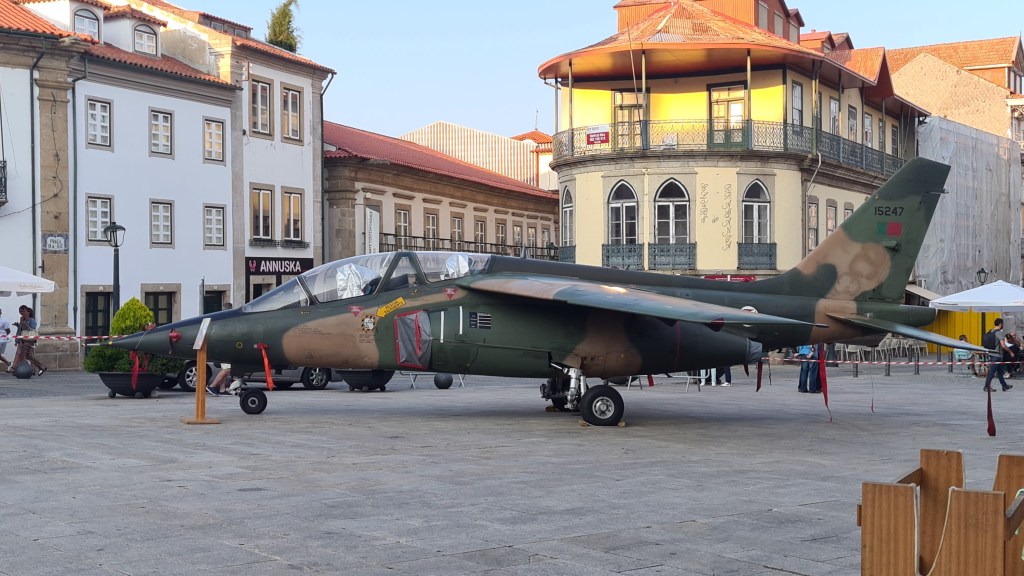ואסיים באירוע ביזארי. חיל האוויר הפורטוגלי חוגג 75 והחליט לחגוג את יום הולדתו עם תושבי הפריפריה הצפונית חברותה הזדמנות לעודד אותם להתנדב . הצבא בנוי על מתנדבים. בכיכר המרכזית, כיכר הקתדרלה הועמדו שני מטוסי קרב לרשות הציבור וליד הנחל בנו מיני בסיס עם סימולטורים, אוהלי ירי, אוהל של חבלנים, מסוקים ועוד ועוד. חיילים וקצינים מזמינים את הציבור לבוא וללמוד , מסבירים ומתרגלים והכל בסבלנות ובאהבה. וגם אנחנו היינו שם.