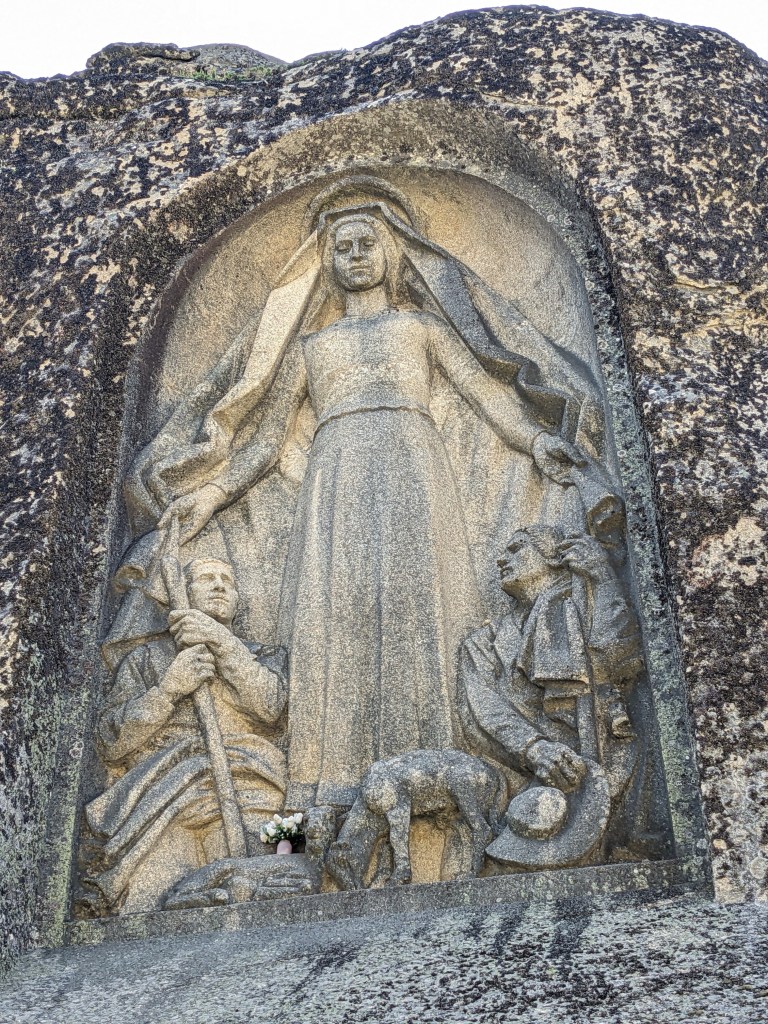 עולים לגובה 1900 מטר ומצד ימין הפתעה מדהימה. תבליט סלע ענק בין עמודי דולמנים מרהיבים. התבליט מנציח את פטרון הרועים Nossa senhora da boa Estrela. אז מאיפה נחת עלינו היופי המדהים הזה? הסיפור הוא על כומר קתולי בשם האב אנטוניו דוארטה אשר שם ליבו לכך שמאות אנשים נוסעים לטייל בהר הגבוה. בא לו הרעיון לפסל את הפסל מול ההר הגבוה כדי לתת את הכבוד שיראה על ידי התיירים. וכמובן שנוצר פסטיבל סביב הפסל המתקיים מדי שנה ביום ראשון השני של חודש אוגוסט. וכמובן שמסופרת גם אגדה רומנטית העוסקת בפסל זה על רועה צאן שהתאהב בכוכבית בשמיים והשאר תקראו באינטרנט….