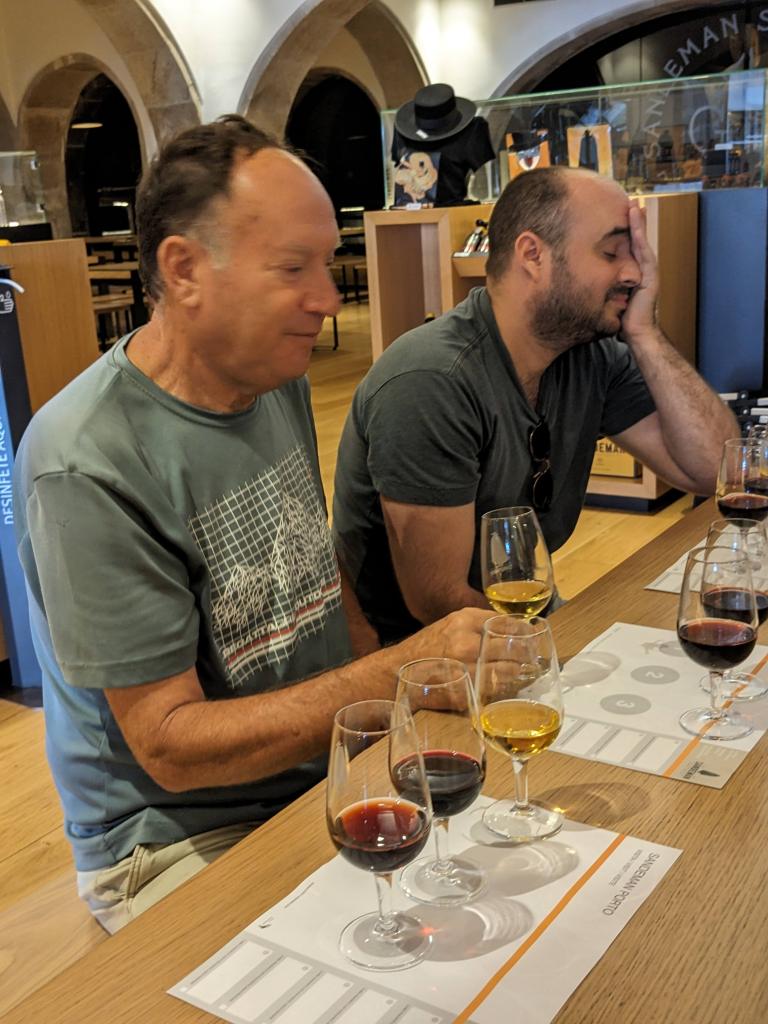 המדריכה מדקלמת, אנחנו מקשיבים ולאות ממנה מתקדמים הלאה במרתפים החשוכים. פה ושם המדריכה שואלת שאלות… אנחנו שותקים. מתקדמים הלאה. הסיור הסתיים עוברים לקטע לו כולם בעצם מחכים… טעימות. לפנינו על השולחן 3 כוסות לכל אחד פורט לבן, ושניים אדומים. אנחנו טועמים, נותנים הערותינו וממשיכים לבא בתור. היה נחמד