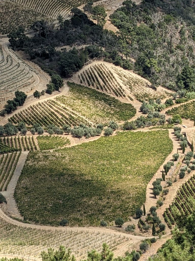 כבר בירידה לכיוון הנהר מתגלים מחזות מדהימים של שורות הכרמים מכל הסוגים והצורות האפשריות (קשה לתאר, ניתן לראות בתמונות). כנראה לקראת העונה, שזה עכשיו, סידרו נקודות תצפית לאורך הכביש וזה מדהים.