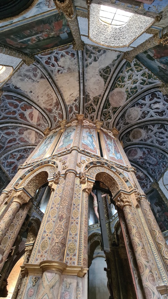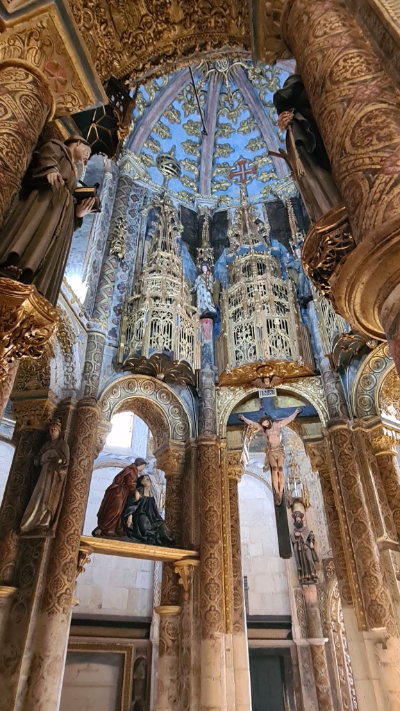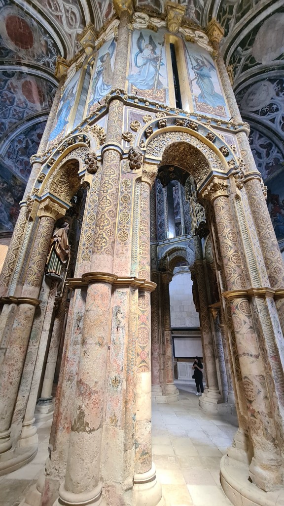 המקום בנוי על מדרונות מיוערים מעל העיירה טומר. המנזר נבנה במאה ה-12 ובמהלך השנים כל מלך 👑 או ראש מסדר הוסיף לו חלקים. המקום המדהים הוא כנסיית השכילה Charola. מבנה הכנסיה ניסה לחקות את הנסיך הקבר בירושלים – כאן נוספו עיטורים מזרחיים , עמודים מאוד גבוהים ובמרכז מזבח ענק. לצערי, במהלך השנים נפגעו חלק מהדברים והיום לא ניתן להתקרב.