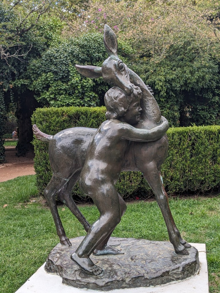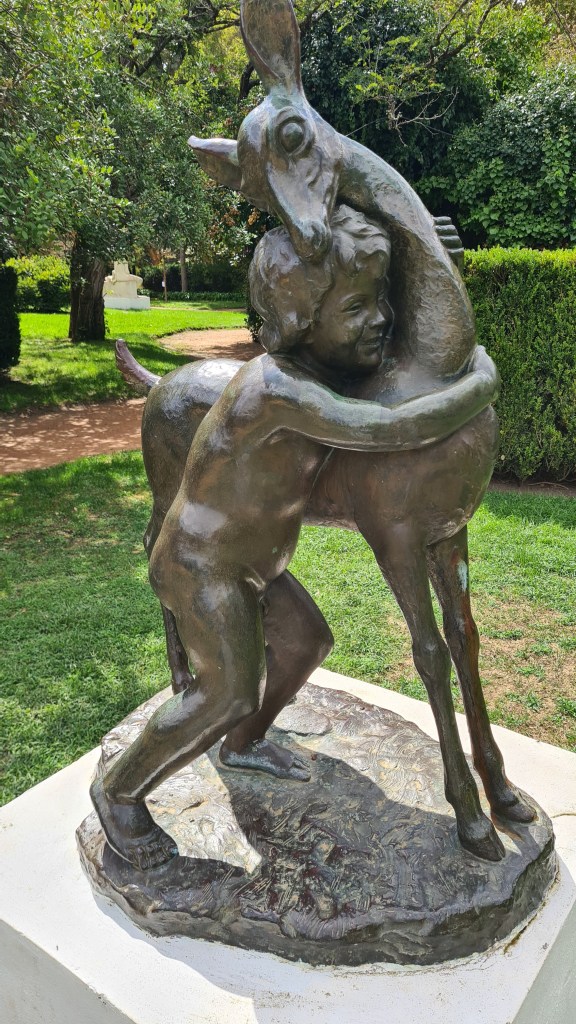 בגן גם אוסף יפיפה של פסלים רובם עוסקים בטבע, באהבה אנשים