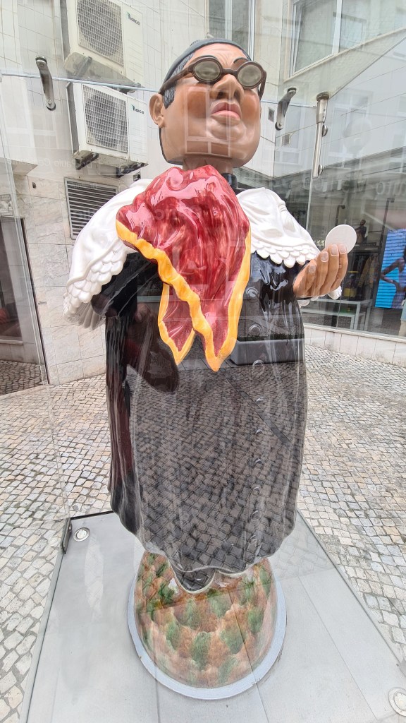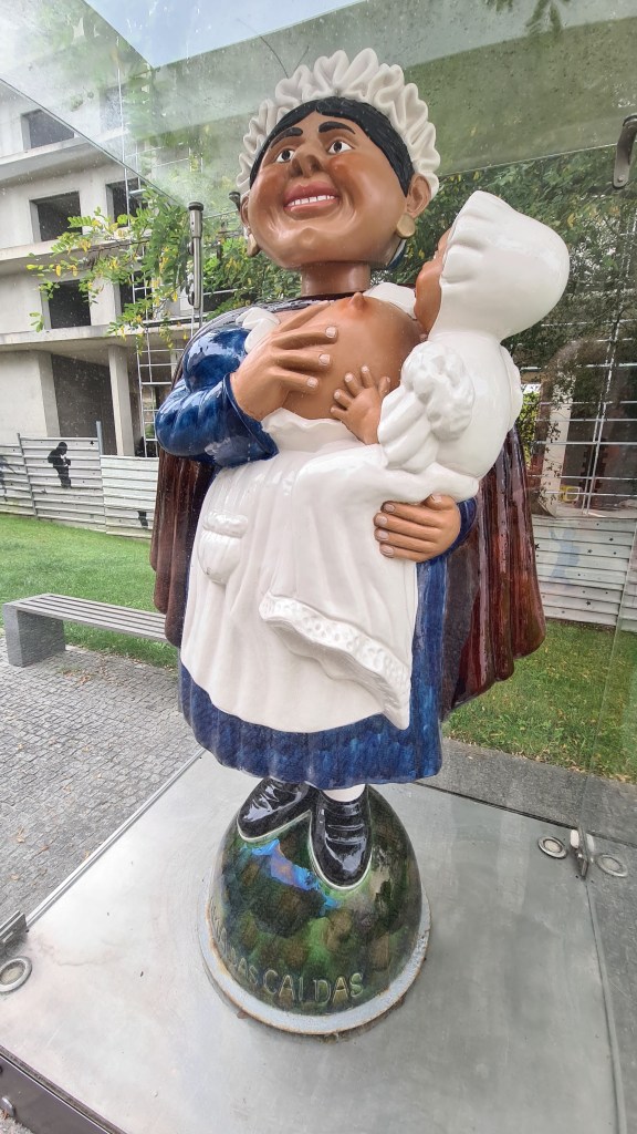 ובמרכז המדרחוב נעשתה מחווה לאומן ולצייר – ילידי העיר. כולם מוזמנים להצטלם איתם. ואם העיר מפורסמת במפעלי הקרמיקה שלה איך מגייסים אותם לתיירות? בונים שביל תיירותי מפסלי קרמיקה הנקרא ROUTA DE CERAMICS. מדובר ב-32 פסלים שממש לא קל למצוא אותם. צריך להוריד אפליקציה מיוחדת חלקיות לטוב. הפסלים לא תמיד גלויים לעין, על קירות, ענפי עצים, על גג מסעדה וגם בתוך מזרקה…למי שמעוניין לעשות את המסלול – ניתן לקבל את המפה ב-tourist informatin לבקש routa bordalo pinheiro
