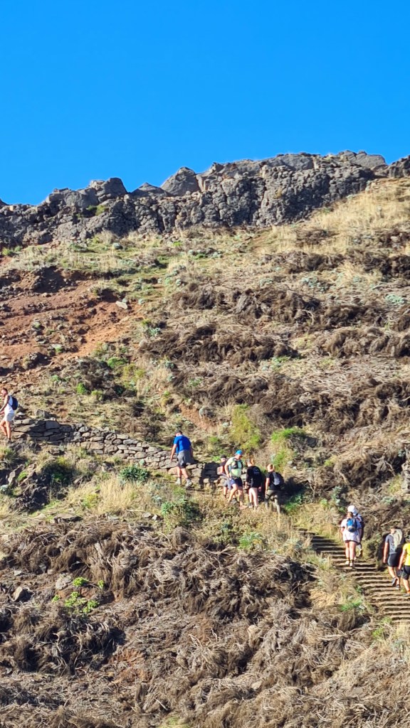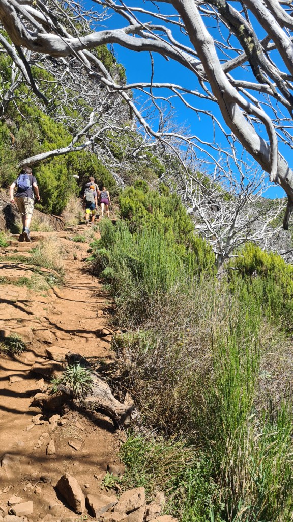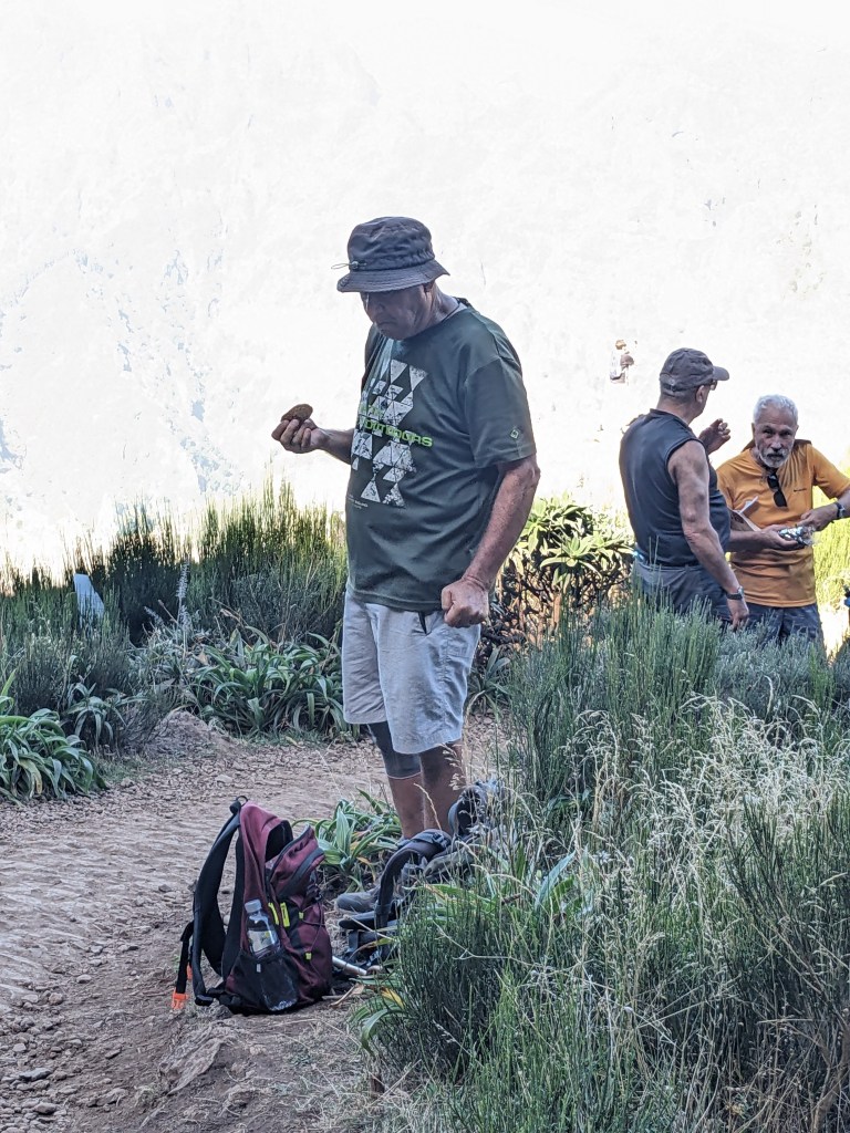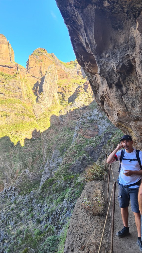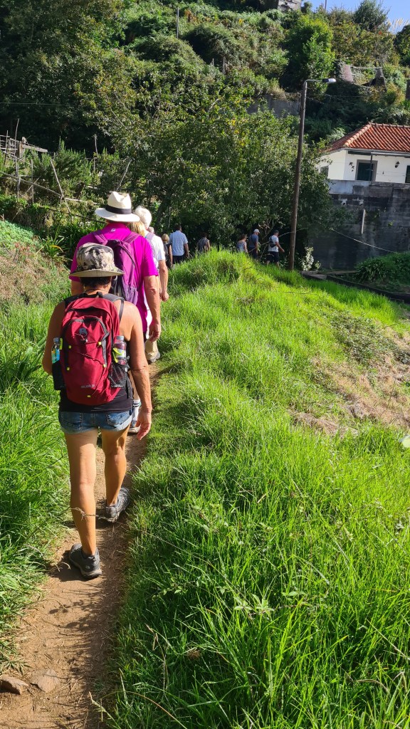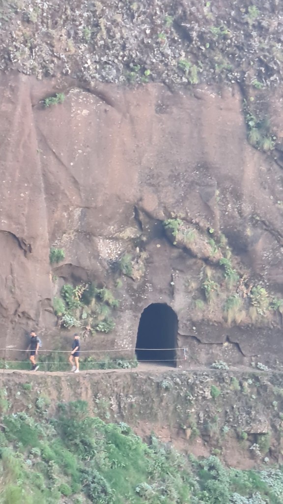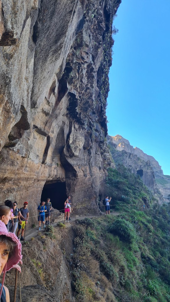 כמה מילים לתיאור המסלול – "זהו הטיול המפורסם ביותר באי מדירה בפורטוגל. מסלול המנהרה הזה מוביל את המטיילים בשבילים צרים, במעלה ובמורד גרמי מדרגות מאיימים, ודרך מנהרות חשוכות. זהו מבחן סיבולת עתיר אדרנלין עם עליות תלולות". ובכל זאת החלטנו לצאת. בנקודת ההתחלה קבלנו מקלות הליכה מעץ ויצאנו לדרך, גם כאן כ-15 משתתפים בגילאים שונים ומארצות שונות.
