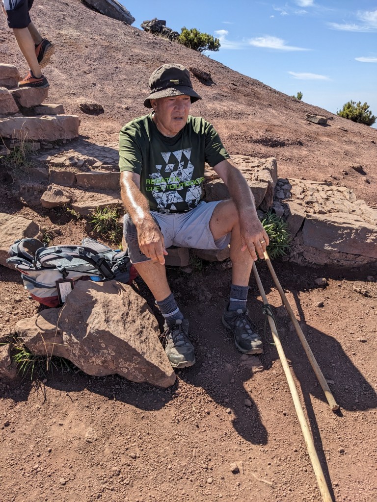 מגיעים לבית הקפה והמדריך אומר – הפסגה במרחק 500 מטר מכם. נוחו קצת ותמשיכו. מקבלים שעה הפסקה לעליה נוספת לפסגה, הליכה קשה של כ-20 דקות למעלה וכ-20 למטה, שוב התלבטות ואז בכוחות אחרונים התחלנו לטפס,. 300 מטר לפני הסוף ויתרנו – וירדנו לנוח מעט. לא ויתר ו על הצילום – 300 מטר לפני הסוף….