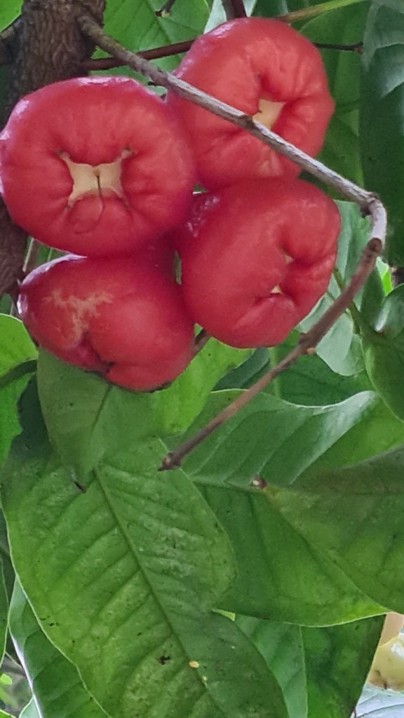 . מצאנו בגן גם עץ מקדמיה, תפוחים, אפרסקים, אפרסמון, קיווי ועוד. והיום עצי פרי שלא הצלחנו לזהות.